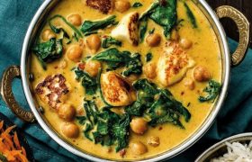 Despite its simplistic ingredients list and short cooking time, the Hyderabadi chicken curry is rich in spice and authentic flavorings.